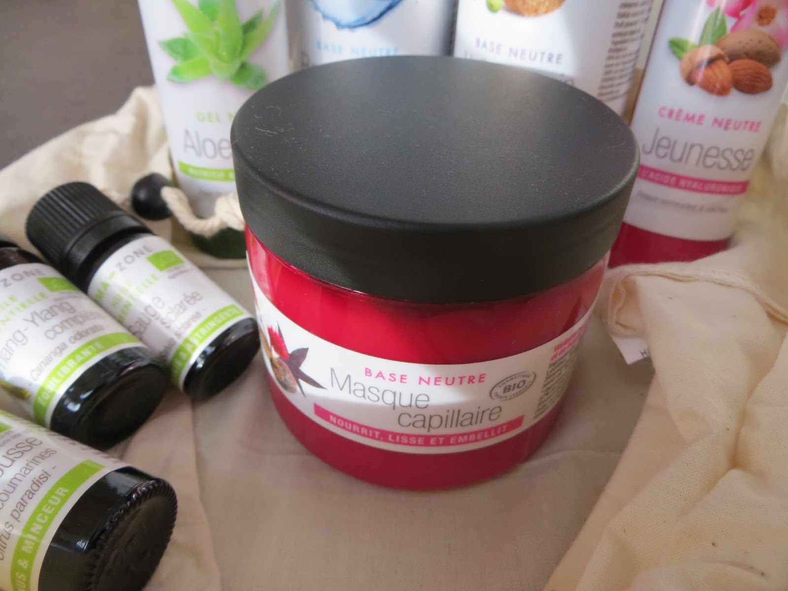 Les amis, je suis pourrie gâtée !! Une belle surprise m'attendait dans ma boîte aux lettres, un (très) lourd colis d'Aroma-Zone. Un peu étonnée car je n'avais pas passé de commande, j'ouvre et je découvre un pochon en tissu contenant plein de produits !